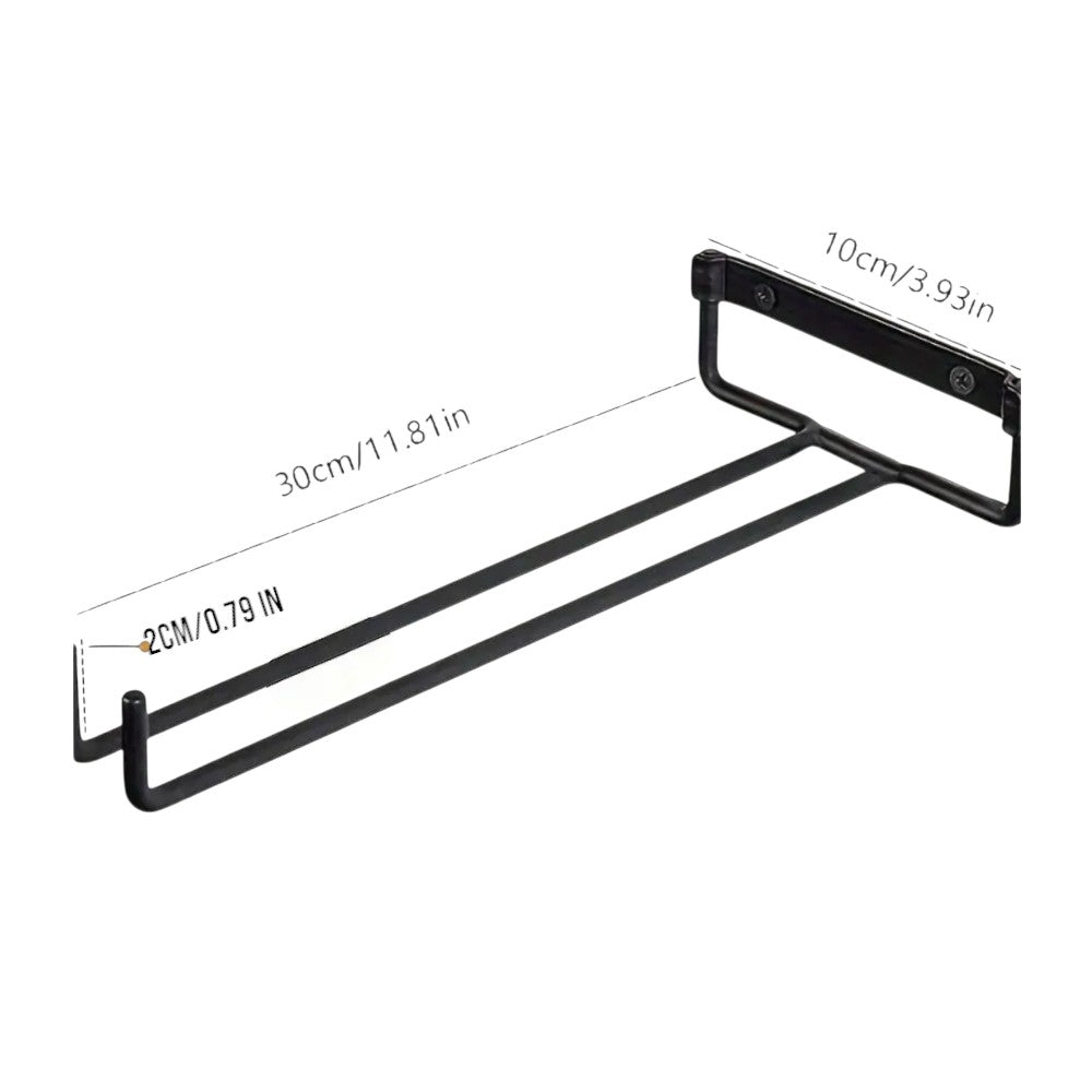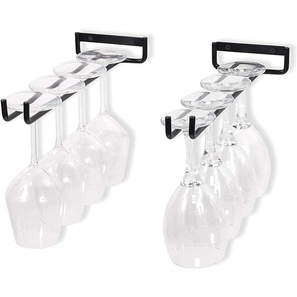 This 4 pack wall-mounted wine glass rack provides elegant and efficient storage for stemware. Its compact iron frame holds glasses upside down for drying and easy access, ideal for kitchens, bars, or dining areas.