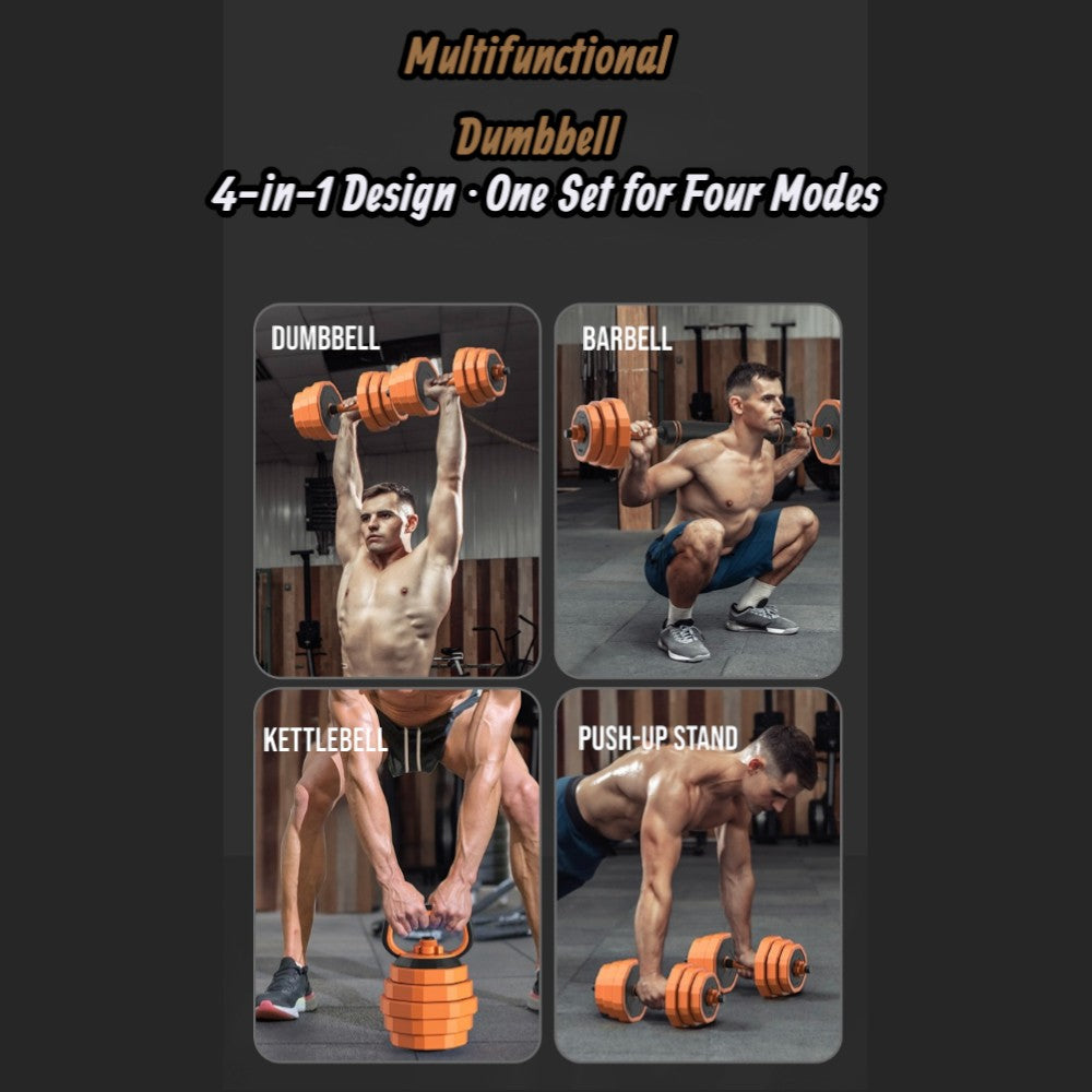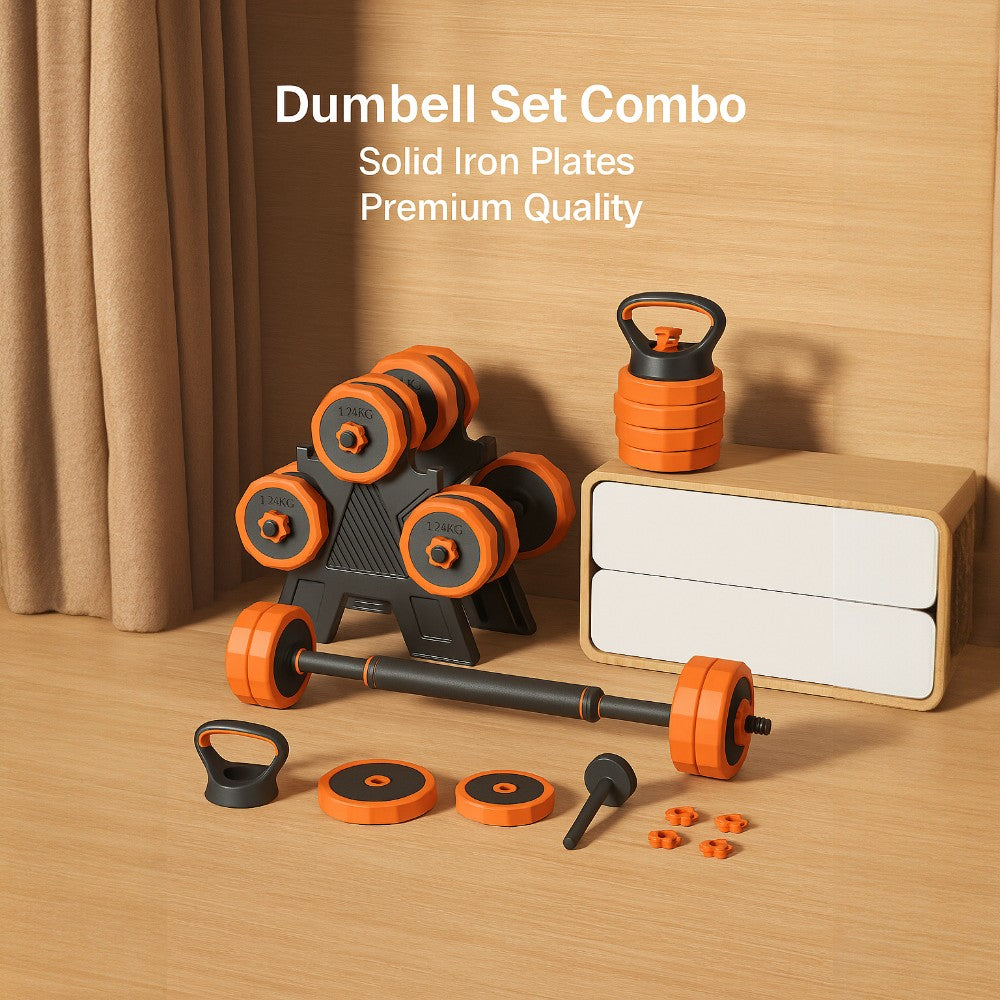 This 15KG adjustable home gym set provides a simple and efficient way to switch between dumbbell, barbell, and kettlebell exercises. Designed for compact storage and flexible training routines, it is ideal for strength building at home.