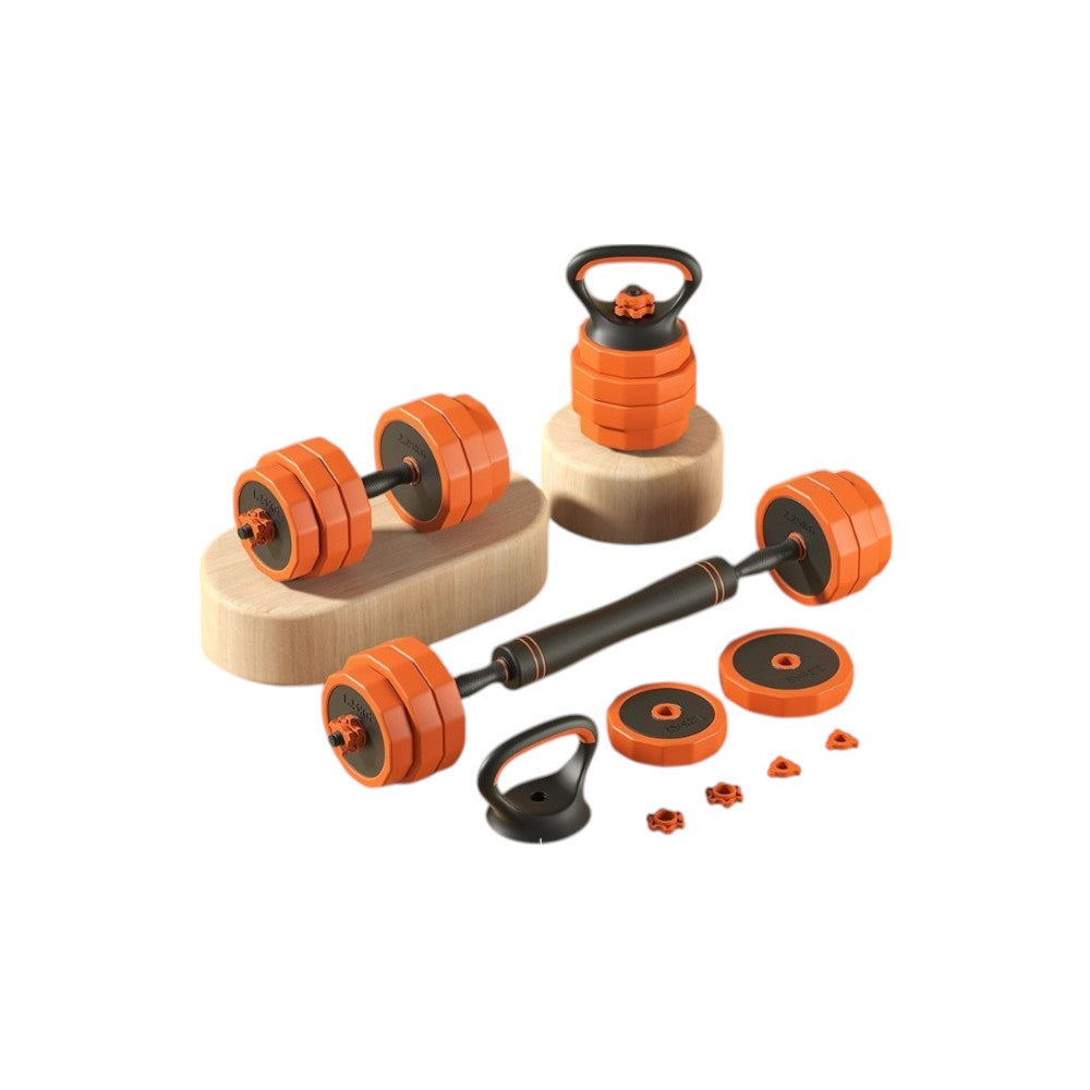 This 10KG adjustable weight set combines versatility and portability for home use. It enables users to train with dumbbells, a barbell, or a kettlebell using one space-saving kit, supporting foundational strength training routines.