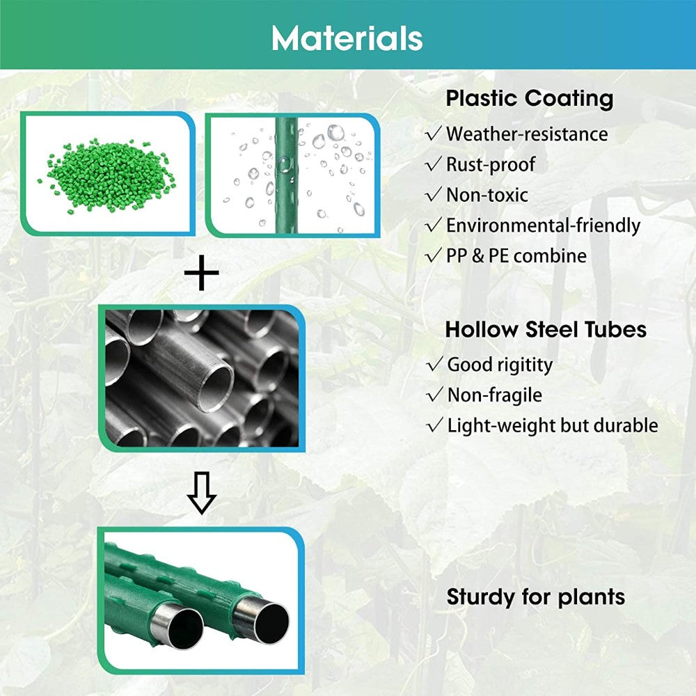 1. Built with a solid steel core and coated with high-quality PE plastic, these garden stakes combine strength with durability, offering essential support for all types of climbing plants throughout the growing season.