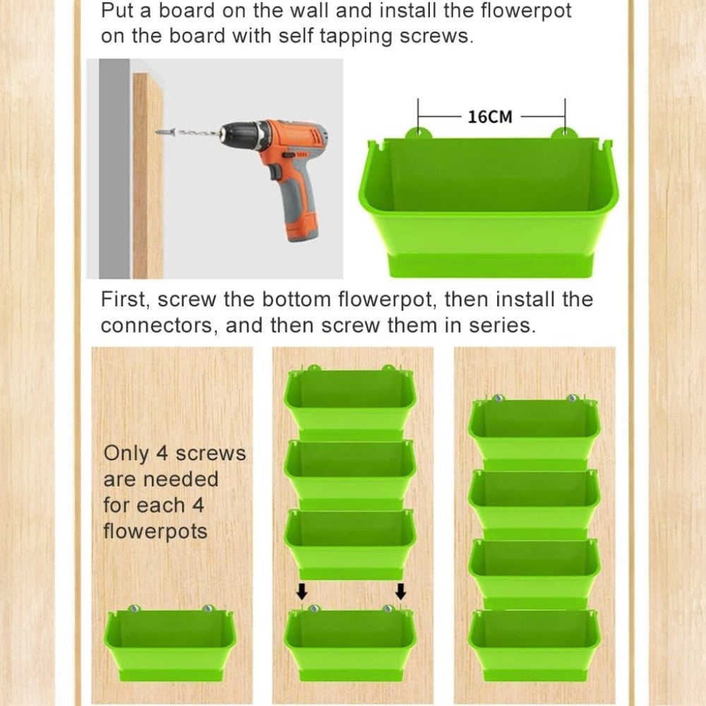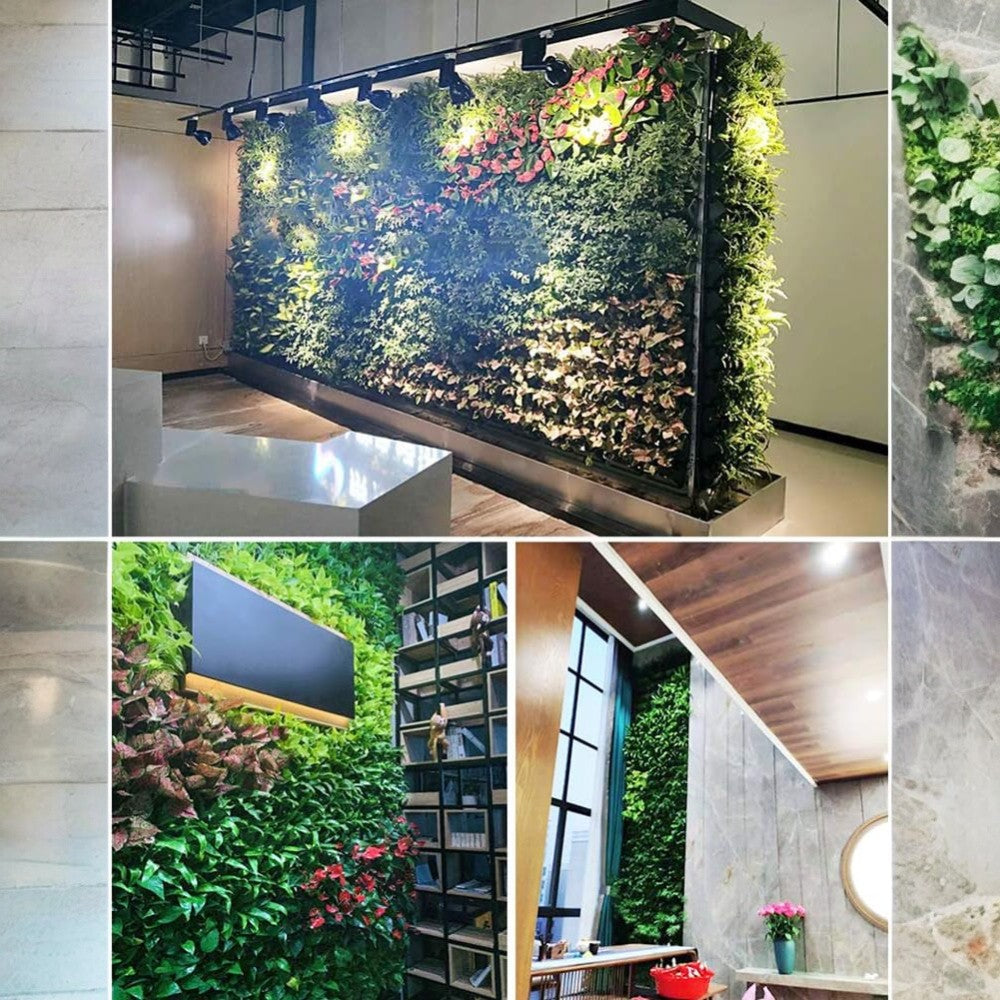 1. Wall-mounted modular system allows easy vertical stacking for personalized green walls.