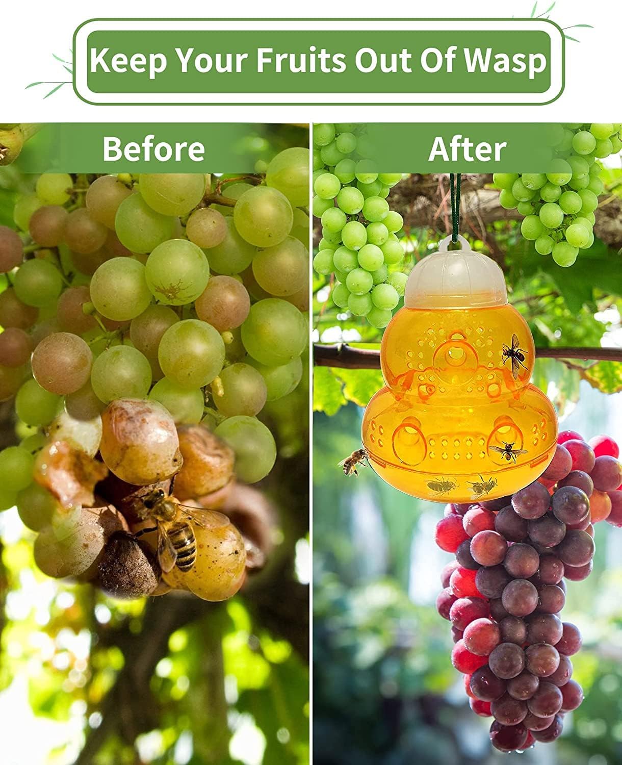 - Smartly Designed for Maximum Efficiency: Each trap features six entry points to maximize the likelihood of attracting and capturing wasps. The design ensures insects can enter but not escape, with additional holes to help disseminate the bait's scent effectively.