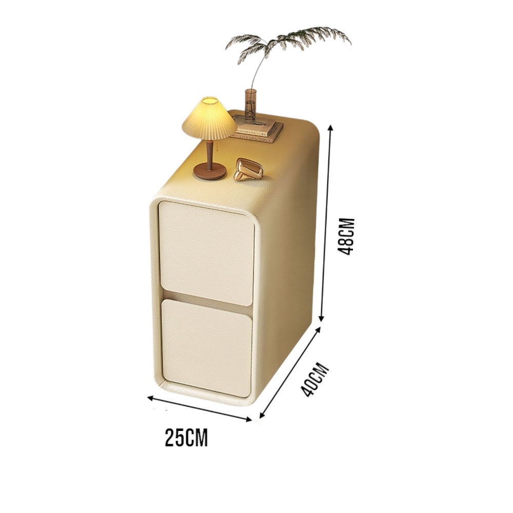 Cream White Bedside Table with Drawers-25cm