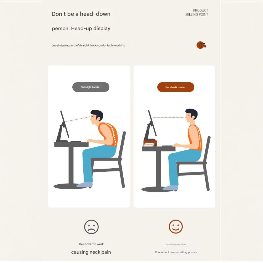 Raises Screen Height Helps adjust your viewing line for more natural sitting position