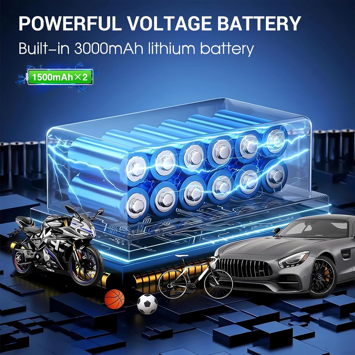 High-Power Performance: Equipped with a pure copper motor and advanced air pressurization technology, this portable compressor delivers fast inflation, filling tires in just 10 seconds—three times quicker than standard wireless inflators. Its built-in dual 1500mAh rechargeable batteries eliminate the need for external power during use.