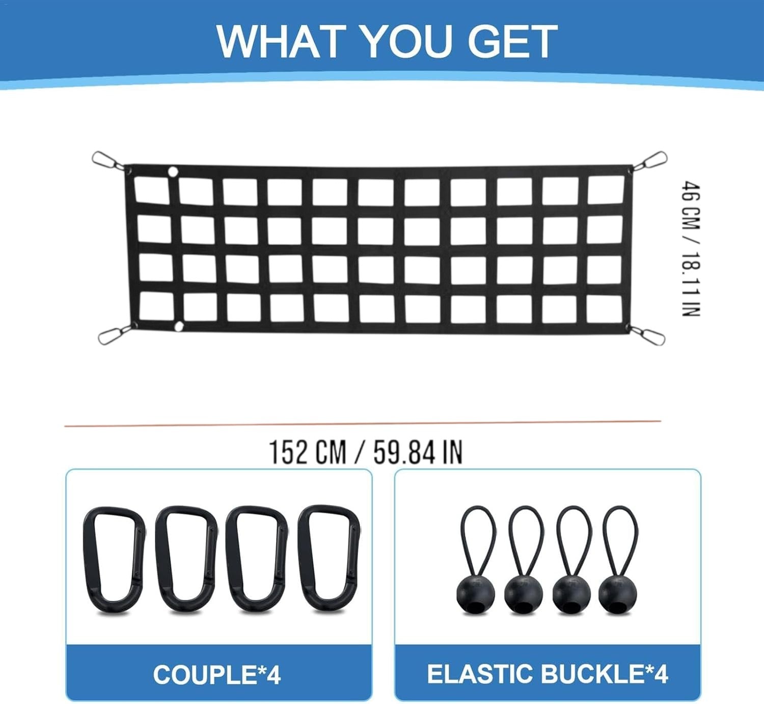 Truck Tailgate Cargo Net 152×46cm with Hooks and Elastic Buckles