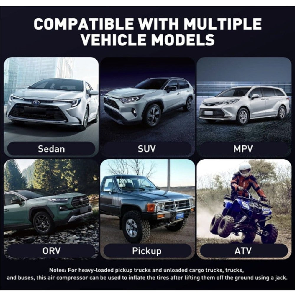 Equipped with a pure copper motor (50 copper coils + 146 shafts) for enhanced durability and stable operation. Suitable for SUVs, pickups, ORVs, sedans, ATVs, and MPVs.