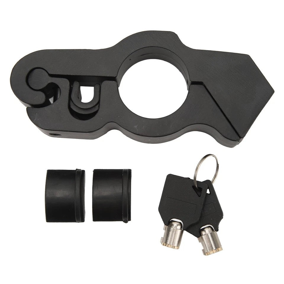 Clamps directly onto the handlebar and brake lever to prevent throttle rotation, helping discourage unauthorized use.