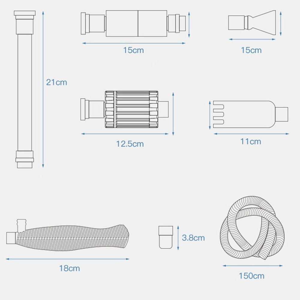 Complete Kit: Includes a 1.5m drain hose, a dirty filter, and multiple suction heads (sand washing cup and duckbill suction head).