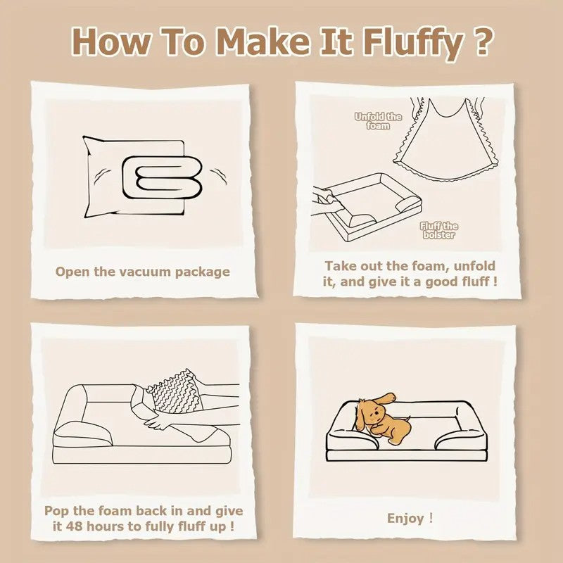 Brief Summary Description: Provide your medium-sized dog with a comfortable place to rest using this XL Orthopedic Dog Bed. Featuring a supportive egg crate foam base, a waterproof liner, and a cozy sofa-style bolster design, it supports restful sleep. The removable, machine-washable cover makes maintenance effortless. Note: Please allow 48 hours for the vacuum-packed foam to fully expand.