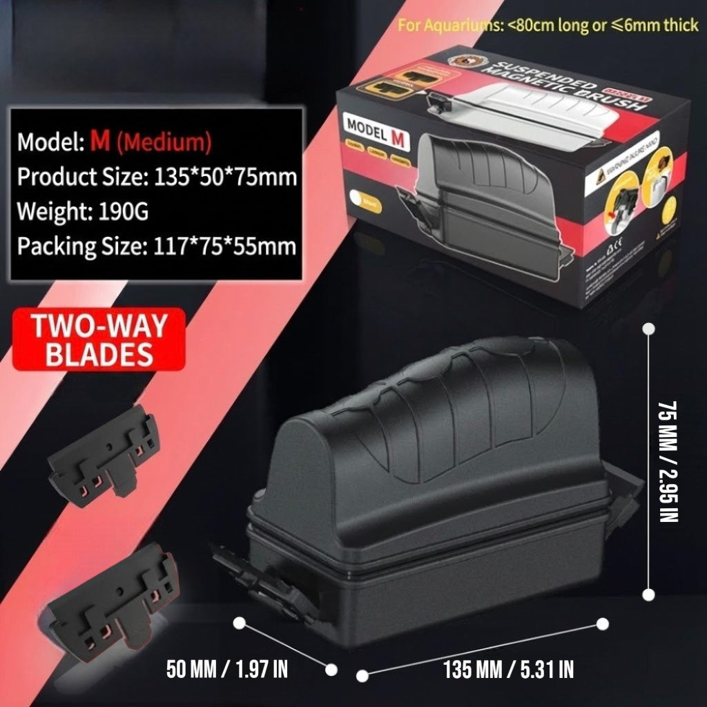 Magnetic Fish Tank Brush with Double Sided Scraper Size - M